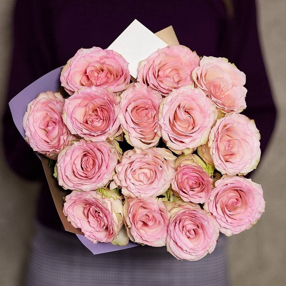 Эти 15 пионовидных роз – воплощение изысканной красоты и элегантности. С их крупными, волнистыми лепестками, напоминающими пионы, эти розы придадут вашему букету уникальную нежность и роскошь. Идеальны для создания романтического настроения или для того, чтобы подчеркнуть важность особого события.