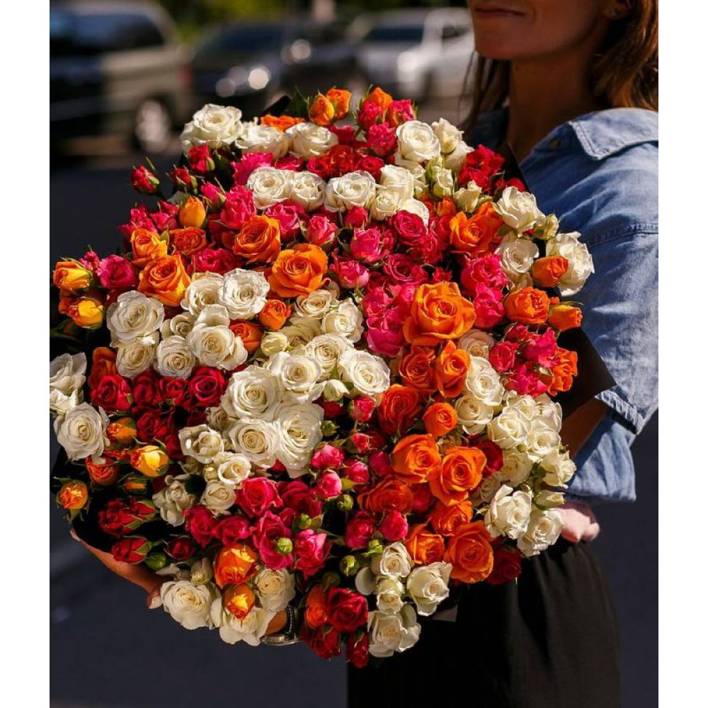 Свежесть и стойкость: Мы гарантируем высокое качество и свежесть каждой спрей-розы, чтобы букет радовал получателя своей красотой как можно дольше.