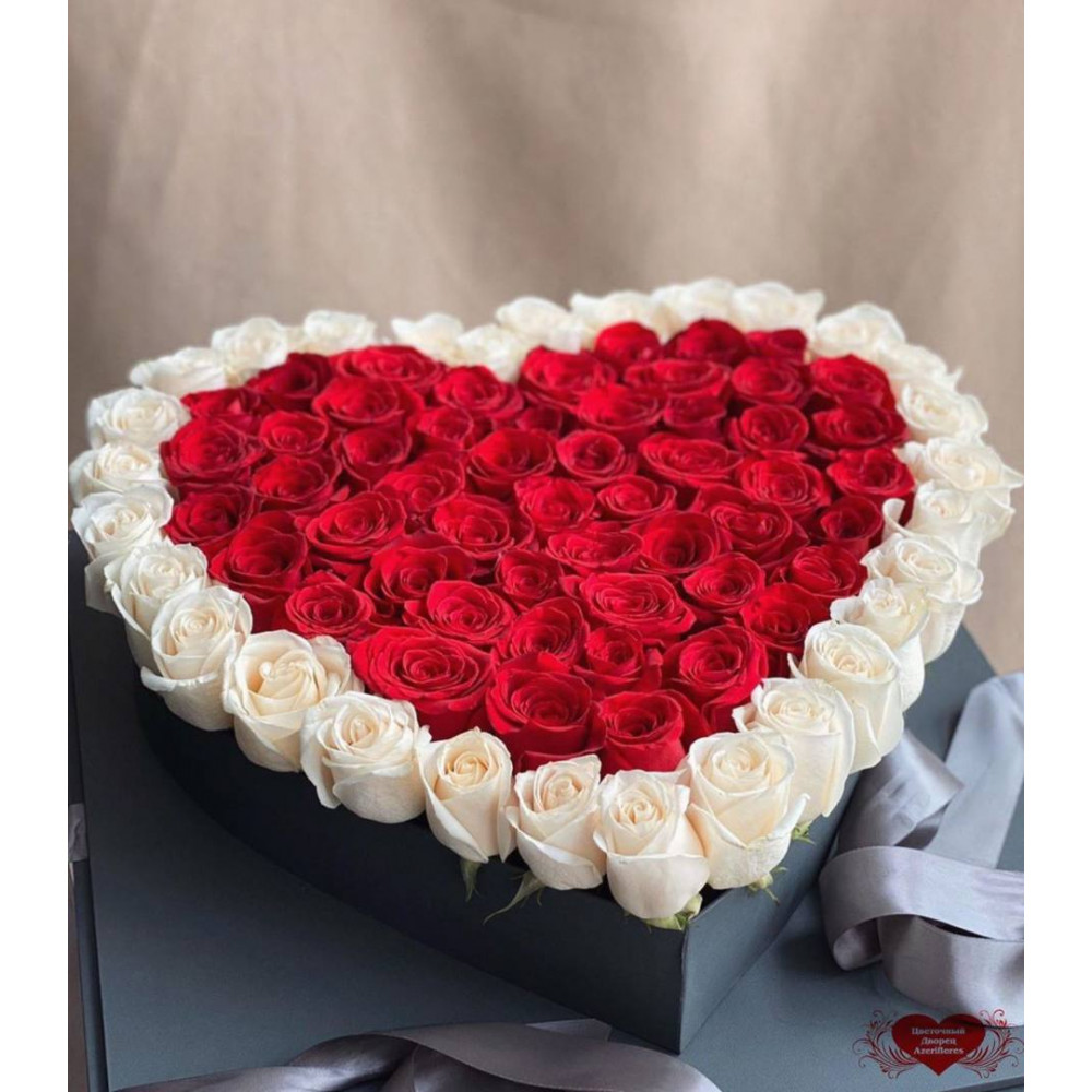 Яркая воздушная коробочка в виде сердца прекрасно подойдет как для презента на праздник, так и для  романтического признания. Ваша дама будет приятно удивлена этому нежному  признанию в любви. Компания «Империя цветов» осуществляет доставку в любую точку Казахстана. От вас требуется  только самая малость –совершить заказ на сайте, или позвонить нам по телефону. Вы поймете, что такое настоящий европейский сервис: быстрая доставка, вежливое обслуживание, гибкая система оплаты.