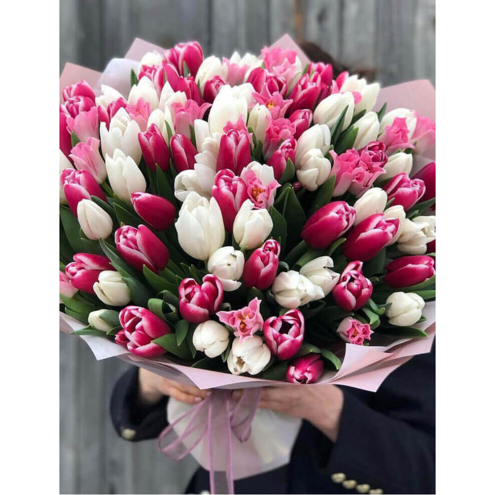 Свежесть и стойкость: Мы гарантируем высокое качество и свежесть каждого тюльпана, чтобы букет радовал своей красотой и долговечностью.